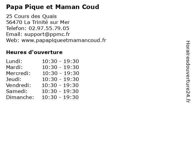 1 Papa Pique et Maman Coud (Distance: 3,79 km) 62 Rue des Druides, 56340 Carnac accessoires, chaussures, coud, enfant, et, femme, maman, mode, papa, pique 2 Papa Pique et Maman Coud (Distance: 11,40 km) . Quai des Voiliers, 56640 Arzon accessoires, boutique, coud, enfant, et, femme, maman, papa, pique, vêtement 3 La Foir'Fouille (Distance: 8,50 km) 8 Rue Yves de Kerguélen, 56400 Auray accessoires barbecue, accessoires piscine, barbecues, camping et pique-nique, entretien piscines, equipement extérieur, foir'fouille, housse protection, jeux d'eau, jeux extérieurs, la, parasols et moustiquaires, piscines, piscines enfants, toiles d'ombrage, tonnelles & rideaux 4 Les Burgers de Papa (Distance: 21,74 km) 18 Rue Billault, 56000 Vannes brasserie, burger, burgers, de, fastfood, frites, les, papa, restaurant 5 La Foir'Fouille (Distance: 24,50 km) 26 Rue d'Alsace, 56860 Séné accessoires barbecue, accessoires piscine, barbecues, camping et pique-nique, entretien piscines, equipement extérieur, foir'fouille, housse protection, jeux d'eau, jeux extérieurs, la, parasols et moustiquaires, piscines, piscines enfants, toiles d'ombrage, tonnelles & rideaux 6 Papa Pique et Maman Coud (Distance: 28,51 km) 8 place de la République, 56360 Le Palais accessoires, boutique, coud, enfant, et, femme, maman, papa, pique, vêtement |