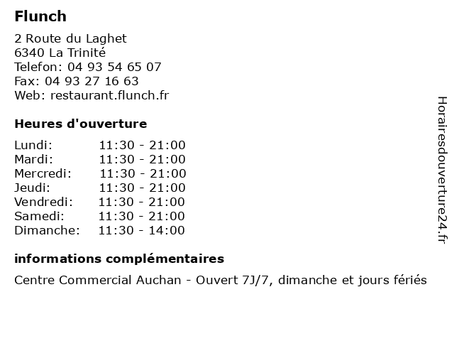 1 Flunch (Distance: 6,93 km) - Route Départementale 6202, 06000 Nice brunch, buffet, familial, flunch, rapide, restaurant, restauration, traiteur, à volonté 3 Flunch (Distance: 13,71 km) - avenue eugene domadei, 06700 Saint laurent du var familial, flunch, restaurant 5 Flunch Traiteur (Distance: 6,93 km) - Centre Commercial Leclerc, 06000 Nice boisson, cafétéria, dessert, flunch, plats, restaurant, traiteur 6 FLUNCH NICE LINGOSTIERE (Distance: 10,68 km) 606 Rte de Grenoble, 06000 Nice ambiance conviviale, buffet à volonté, dîner en groupe, flunch, flunch anniveraire, frites à volonté, lingostiere, menu enfant, menu flunch, nice, petit prix, repas variés, restaurant familial, restaurant moules, restaurant pas cher |