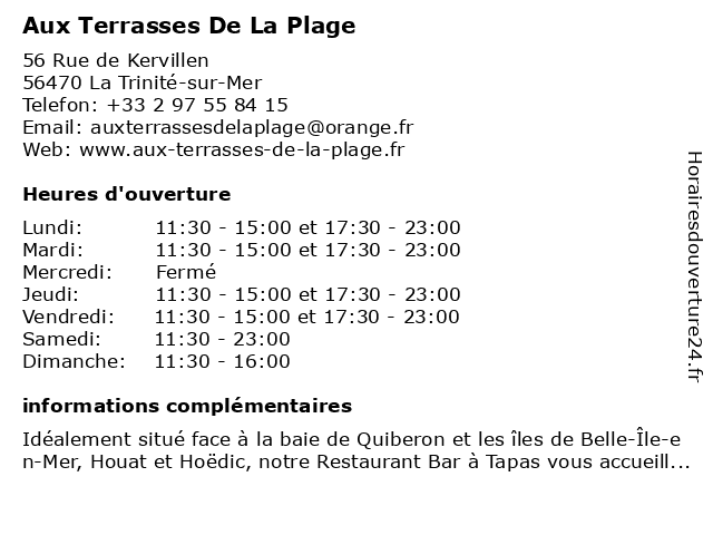 | Dimanche | 11:30-16:00 |