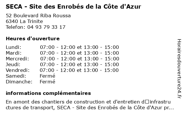 | Lundi | 07:00-12:00 et 13:00-15:00 |