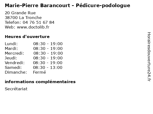 | Lundi | 08:30-19:00 |