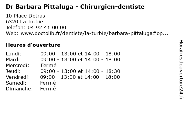 | Lundi | 09:00-13:00 et 14:00-18:00 |