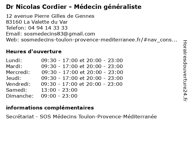 | Lundi | 09:30-17:00 et 20:00-23:00 |