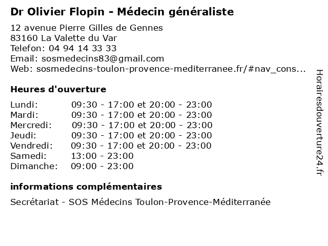1 Olivier Desforges (Distance: 0,54 km) - avenue de l'Université, 83160 La Valette-Du-Var accessoires, boutique, desforges, linges, magasin, maison, olivier 2 Medecin Olivier Goret - Asst Dr Thomas An (Acupuncteur) (Distance: 1,87 km) 30 Avenue Gabriel Peri, 83130 La Garde acupuncteur, an, asst, docteur, dr, goret, medecin, olivier, sante, services, thomas 3 Olivier Gilbert (Distance: 3,87 km) Guinguette La Croix Faron, 83200 Toulon gilbert, olivier, restaurants 4 Professeur Olivier Gisserot - Médecine interne (Consultation sur rendez-vous) (Distance: 6,17 km) , Bd Sainte Anne, 83800 Toulon consultation, docteur, gisserot, interne, medecins, médecine, olivier, professeur, rendez, santé, sur, vous 5 Jean-Olivier Misericordia - Ostéopathe et Diététicien (Distance: 7,71 km) 304 Avenue du 15E Corps, 83200 Toulon diététicien, diététicienne, et, jean, misericordia, olivier, ostéopathe, repas, régime alimentaire, santé 6 Maître Olivier Dautheribes - Avocat (Distance: 10,10 km) 4 Avenue Gambetta, 83400 Hyères avocat, avocats, civils, dautheribes, droits, juridiques, maître, olivier |