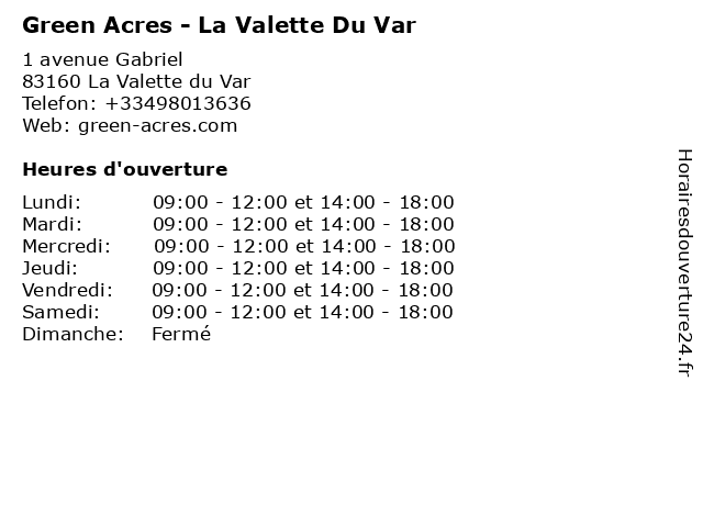 | Lundi | 09:00-12:00 et 14:00-18:00 |