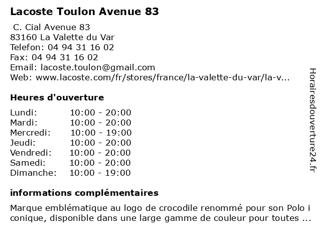 Termes de recherche pour Lacoste Toulon Avenue 83:toulon, maroquinerie, lacoste, avenue, 83, articles de sport, magasin de chaussures, magasin de vêtements pour enfants, magasin de vêtements pour hommes, magasin de vêtements pour femmes, magasin de vêtements de sport, magasin d’accessoires de mode |