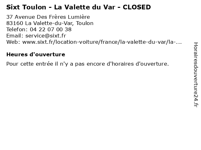| Appeler Sixt Toulon - La Valette du Var - CLOSED | |