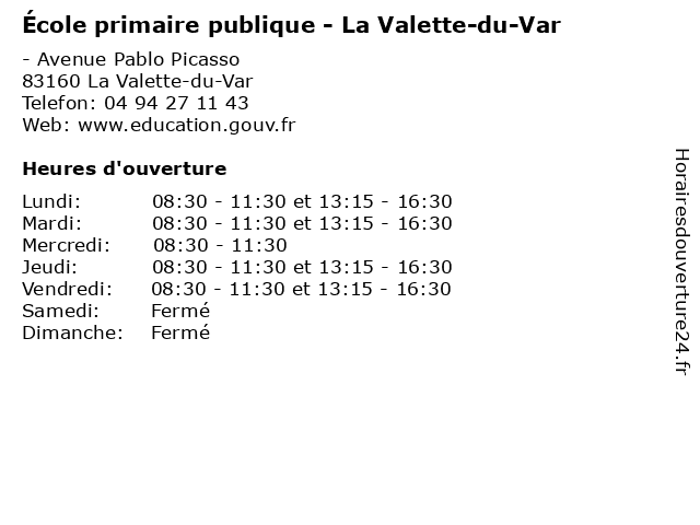| Mardi | 08:30-11:30 et 13:15-16:30 |