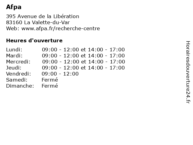 | Lundi | 09:00-12:00 et 14:00-17:00 |