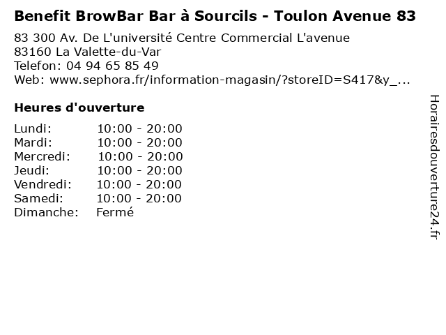 Termes de recherche pour Benefit BrowBar Bar à Sourcils - Toulon Avenue 83:bar, toulon, avenue, 83, salon de beauté, benefit, sourcils, magasin de produits cosmétiques, browbar |