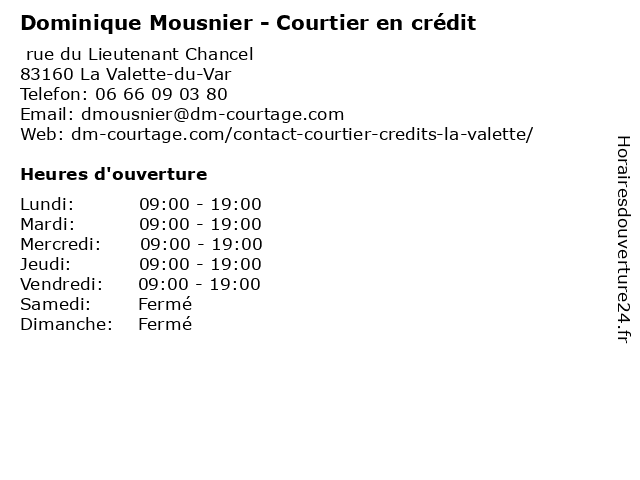 | Lundi | 09:00-19:00 |