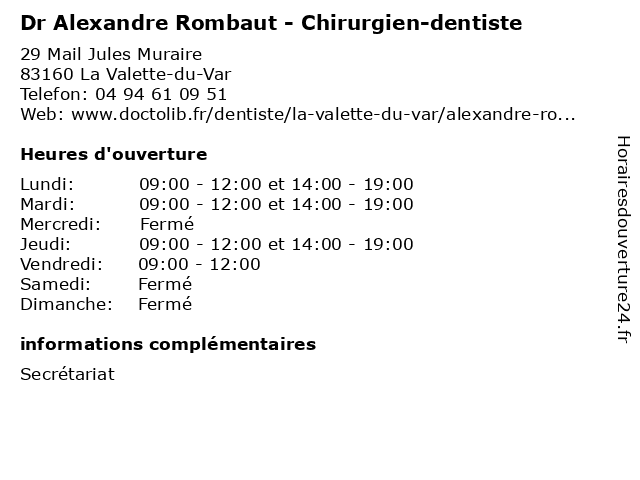 | Lundi | 09:00-12:00 et 14:00-19:00 |