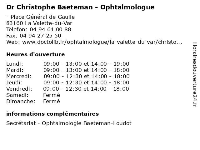 | Mercredi | 09:00-12:30 et 14:00-18:00 |