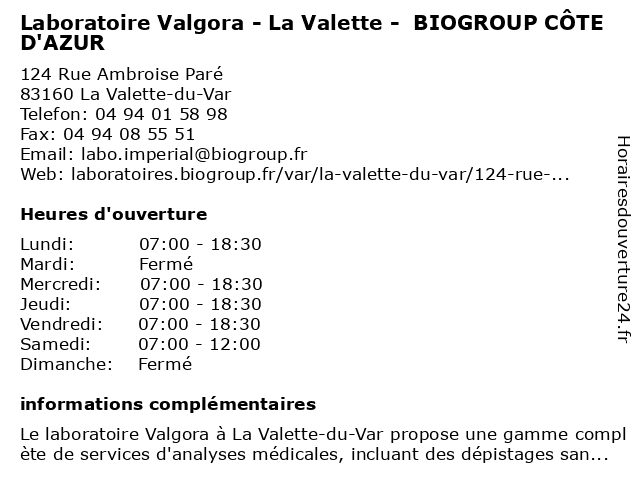 Termes de recherche pour Laboratoire Valgora - La Valette - BIOGROUP CÔTE D'AZUR:la, laboratoire, cote, d'azur, valette, valgora, biogroup, dépistages, laboratoire de diagnostic |