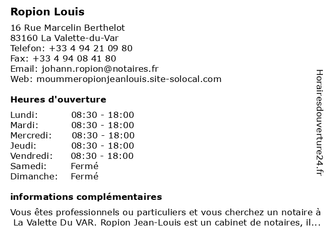 | Lundi | 08:30-18:00 |