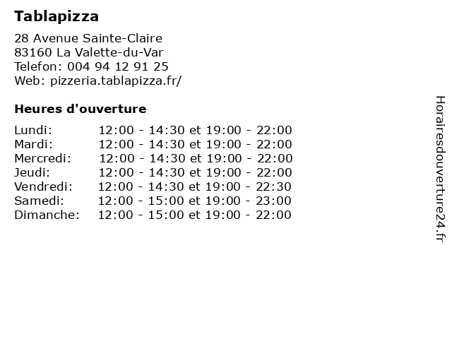 | Mardi | 12:00-14:30 et 19:00-22:00 |