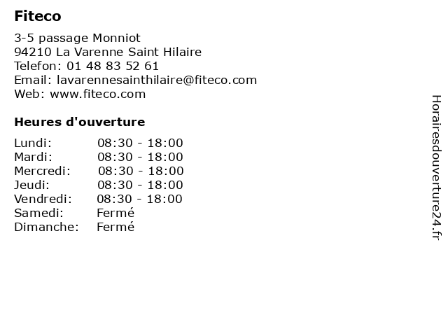 1 Fiteco (Distance: 9,07 km) 6 rue Louise Aglaé Cretté, 94400 Vitry-sur-Seine bureau, comptable, conseils, expert, fiteco 2 Fiteco (Distance: 19,43 km) 183 rue de la Pompe, 75116 Paris bureau, comptable, conseils, expert, fiteco 3 Fiteco - Cabinet Guinard (Distance: 5,43 km) 11 rue du Maréchal Foch, 94360 Bry-sur-Marne audit, cabinet, comptabilité, comptable, expertise, fiteco, guinard, professionnel 4 Fiteco (Distance: 22,99 km) 25 Avenue de l'Europe, 92310 Sèvres bureau, comptable, conseils, expert, fiteco 5 Fiteco (Distance: 37,72 km) 5 rue des Grands Champs, 78300 Poissy bureau, comptable, conseils, expert, fiteco 6 Fiteco (Distance: 39,44 km) 8 Avenue du Général de Gaulle, 78570 Andresy bureau, comptable, conseils, expert, fiteco |