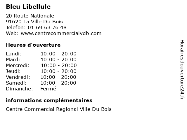 1 Bleu Libellule (Distance: 4,53 km) Avenue de la Maison Neuve, 91220 Brétigny-sur-Orge bleu, cheveux, coiffure, corps, esthétique, libellule, produits beauté, produits professionnels, visage 2 Bleu Libellule (Distance: 7,10 km) . Ville de Bois, 91620 La Ville du Bois beaute, bleu, cafe, chaussures, enfants, hommes, libellule, lingerie, mode femmes, restaurant, sport 3 Bleu Libellule (Distance: 7,18 km) Rue de la Croix Saint-Jacques, 91620 La ville-du-Bois bleu, cheveux, coiffure, corps, esthétique, libellule, produits beauté, produits professionnels, visage 4 Bleu Libellule (Distance: 9,76 km) 2 Avenue de l'Aubrac, 91940 Les Ulis bleu, cheveux, coiffure, corps, esthétique, libellule, produits beauté, produits professionnels, visage 5 Bleu Libellule (Distance: 9,85 km) . Avenue de L'Aubrac, 91940 Les Ulis beaute, bleu, cafe, chaussures, enfants, libellule, lingerie, mode femmes, mode hommes, restaurant, sport 6 Bleu Libellule (Distance: 10,76 km) Avenue de la Plesse, 91140 Villebon-sur-Yvette bleu, cheveux, coiffure, corps, esthétique, libellule, produits beauté, produits professionnels, visage |