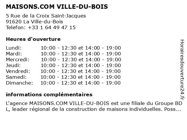 | Lundi | 10:00-12:30 et 14:00-19:00 |