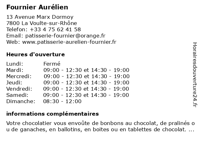 | Samedi | 09:00-12:30 et 14:30-19:00 |