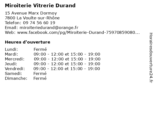 | Mardi | 09:00-12:00 et 15:00-19:00 |
