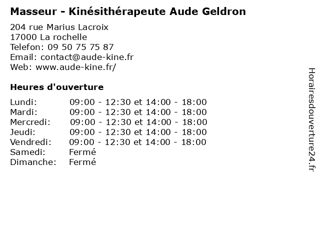 | Lundi | 09:00-12:30 et 14:00-18:00 |