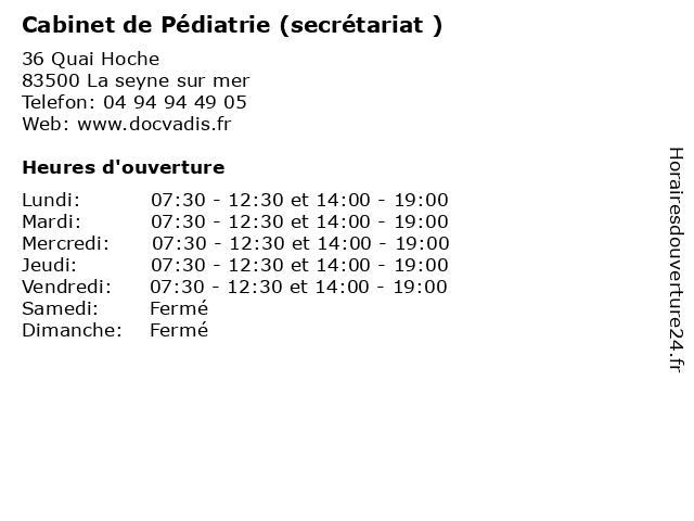 | Lundi | 07:30-12:30 et 14:00-19:00 |