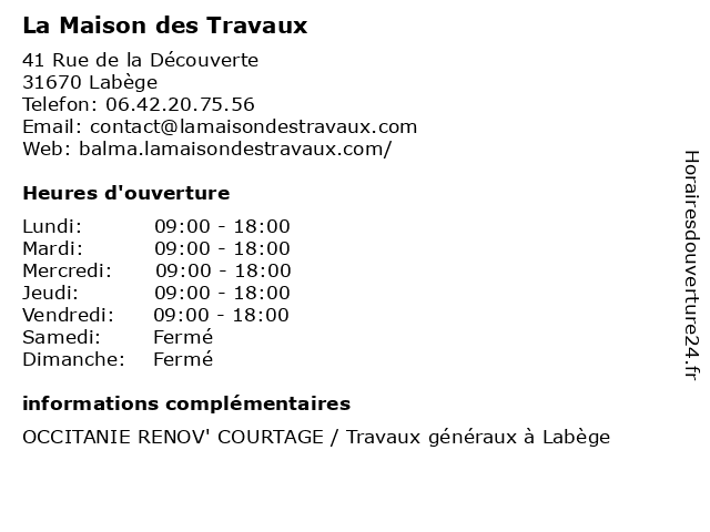1 La Maison des Travaux (Distance: 7,67 km) 8 Place Olivier, 31300 Toulouse courtiers, des, financement, habitation, la, maison, travaux 2 La Maison Des Travaux (Distance: 15,64 km) 50 Route de Paris, 31150 Fenouillet architecte, architecture, des, décoration, extension, généraux, la, maison, rénovation, travaux 3 Anciens Elèves Conduct Travaux (Distance: 1,18 km) 5 Allée Jean Griffon, 31400 Toulouse anciens, conduct, elèves, travaux 4 Solutio Travaux (Distance: 3,98 km) 6 Rue Maurice Hurel, 31500 Toulouse constructions, maisons, projets, solutio, travaux 5 illiCO Travaux (Distance: 6,47 km) 71 Avenue Jean Chaubet, 31500 Toulouse agence, constructeurs, illico, projets, promotion, travaux 6 Relais Colis® / BOOSTER TRAVAUX RENOVATION (Distance: 7,29 km) 70 Rue de la Colombette, 31000 Toulouse booster, colis, colis®, relais, renovation, services postaux et de livraison, travaux |