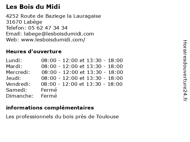 | Mercredi | 08:00-12:00 et 13:30-18:00 |