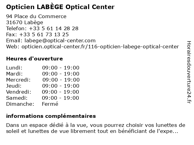 Termes de recherche pour Opticien LABÈGE Optical Center:center, opticien, optical, labège |