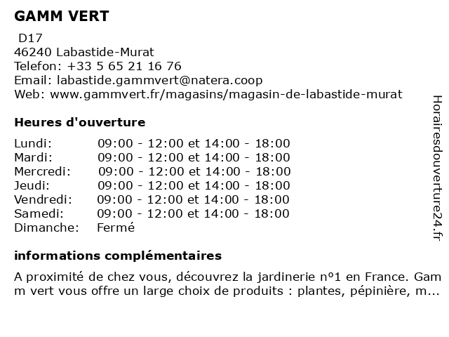 1 Gamm vert (Distance: 18,50 km) Route de Salviac, 46300 Gourdon animalerie, gamm, jardin, jardinerie, mobilier de jardin, plantes, pépinière, vert 2 GAMM VERT (Distance: 18,58 km) Avenue de la Gare, 46500 Gramat animalerie, gamm, jardin, jardinerie, mobilier de jardin, plantes, pépinière, vert 3 Gamm Vert Capel 4 Saisons (Distance: 0,01 km) Route de Soulomes, 46240 CÅ?ur-de-Causse capel, gamm, saisons, vert 4 Pole Vert (Distance: 17,81 km) - Route du Vigan, 46300 Gourdon animaleries, jardinage, pole, pôle vert, vert 5 GAMM VERT CAPEL 4 SAISONS (Distance: 18,50 km) Impasse de la Fontaine des Malades, 46300 Gourdon capel, gamm, saisons, vert 6 Gamm Vert Capel 4 Saisons Franchisé indépendant (Distance: 18,59 km) Rue des Artisans, 46500 Gramat capel, franchisé, gamm, indépendant, saisons, vert |