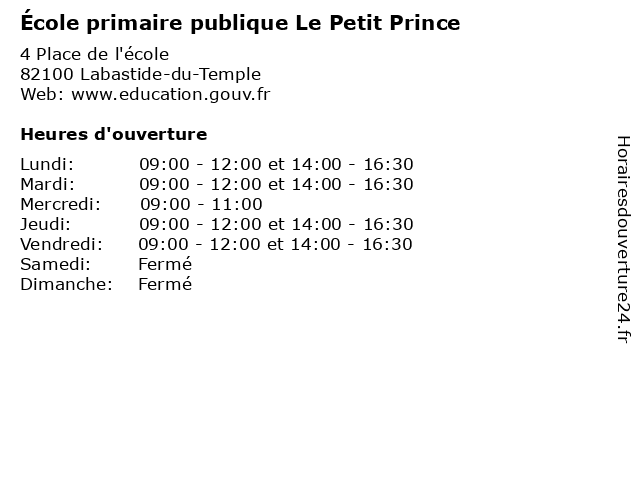 | Mardi | 09:00-12:00 et 14:00-16:30 |