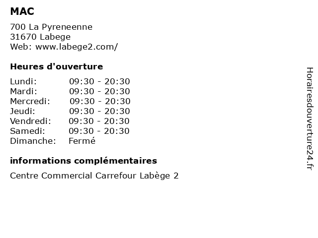 | Lundi | 09:30-20:30 |