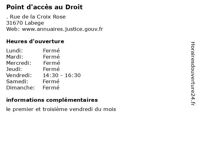 | Samedi | Fermé |