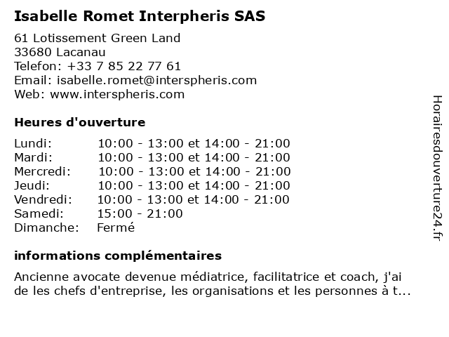 Termes de recherche pour Isabelle Romet Interpheris SAS:sas, isabelle, romet, interpheris |