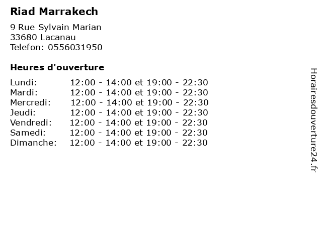 | Mardi | 12:00-14:00 et 19:00-22:30 |