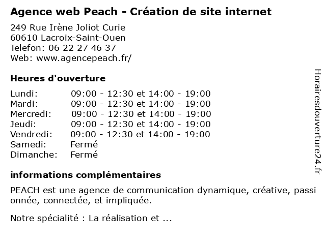 | Mercredi | 09:00-12:30 et 14:00-19:00 |
