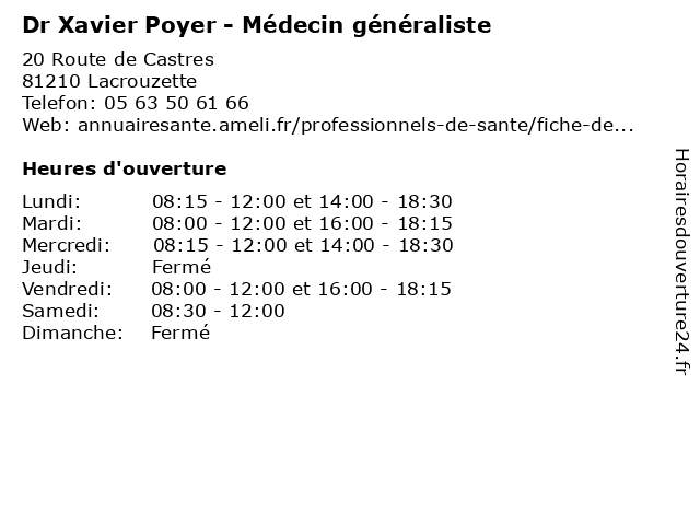 | Lundi | 08:15-12:00 et 14:00-18:30 |