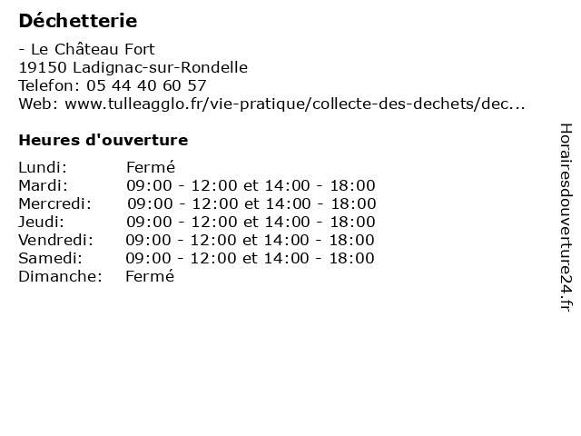 | Mardi | 09:00-12:00 et 14:00-18:00 |