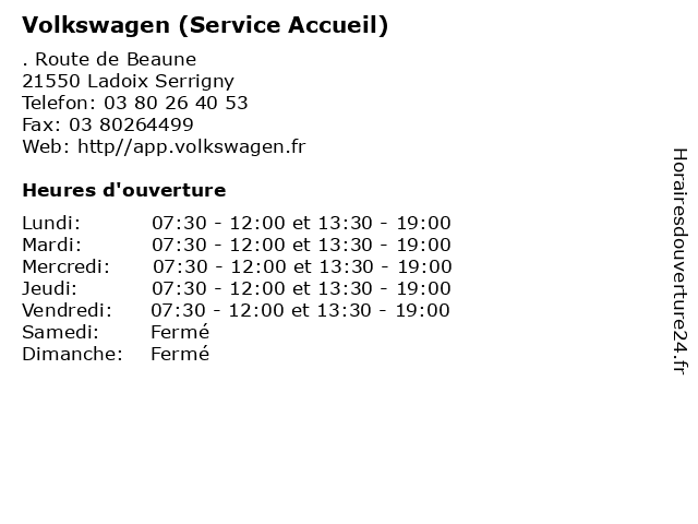 | Vendredi | 07:30-12:00 et 13:30-19:00 |