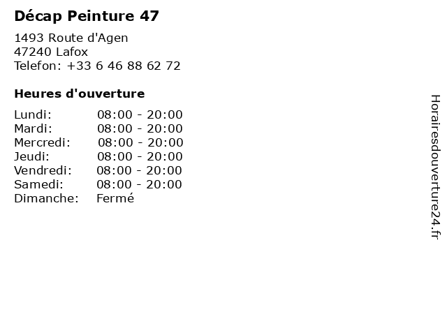 | Samedi | 08:00-20:00 |