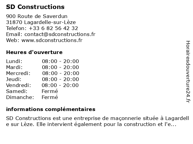 1 Constructions Muretaines (Distance: 7,74 km) 2 Rue Aymé Kunc, 31600 Muret construction, constructions, habitat, maçonnerie, muret, muretaines, ouvertures, pavillon, plomberie, rénovation, témoin, électricité 2 SD Services Midi-Pyrénées (Distance: 9,59 km) 19 bis Rue Pierre de Fermat, 31600 Muret aménagements, midi, midi-pyrénées, muret, pyrénées, sd, services, véhicules utilitaires 3 ERC - Entreprise Revêtements Constructions (Distance: 14,28 km) 3 Rue Ecopôle, 31270 Villeneuve Tolosane bâtiment, béton, constructions, entreprise, erc, maçonnerie, revêtements, travaux 4 DUPUY CONSTRUCTIONS (Distance: 19,57 km) 95 Route de Lombez, 31830 Plaisance-du-Touch constructions, dupuy 5 JouéClub (Distance: 16,30 km) 281 Route d'Espagne, 31100 Toulouse board games, constructions toys, educational games, jouéclub, kids, outdoor, puzzles, sports, toys 6 Constructions Muretaines (Distance: 22,66 km) 113 Route de Bayonne, 31300 Toulouse constructeurs, construction, constructions, maisons, muretaines, projets |