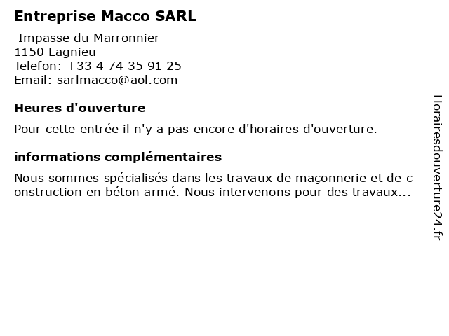 | Appeler Entreprise Macco SARL | |