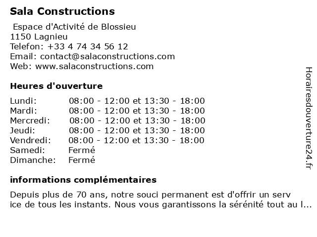 | Lundi | 08:00-12:00 et 13:30-18:00 |