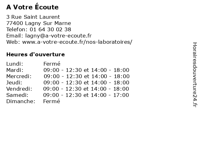 | Mardi | 09:00-12:30 et 14:00-18:00 |