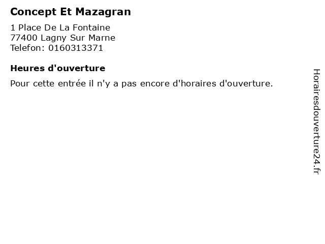 1 Concept Et Mazagran (Distance: 0,40 km) 16 Rue Des Sources, 77400 Lagny Sur Marne concept, mazagran, restaurants 2 Minéral Art Concept (Distance: 0,71 km) 49 Avenue du Maréchal de Lattre de Tassigny, 77400 Lagny-sur-Marne art, concept, lagny-sur-marne, marbrier, minéral, terrazzo 3 Magny-Fi-Concept (Distance: 8,03 km) 40 Rue de la clé des champs, 77700 Magny le hongre concept, fi, magny, magny le hongre, mobilier 4 Concept Résine (Distance: 9,51 km) 2 rue Emile Zola, 77450 Montry concept, pose, revêtements de sols et de murs, résine 5 L'Opticien Concept (Distance: 14,49 km) 3 Avenue Roland Moreno, 77124 Chauconin-Neufmontiers concept, de la mode, l'opticien, lentilles de contact, lunettes, optique 6 Concept + (Distance: 14,79 km) Zone Artisanale Du Plateau, 93250 Villemomble appareils, concept, distribution, magasins, ménagers, raphael |