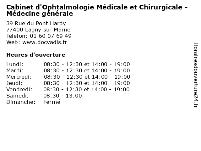 | Lundi | 08:30-12:30 et 14:00-19:00 |