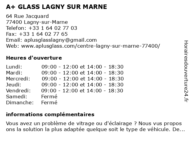 | Lundi | 09:00-12:00 et 14:00-18:30 |