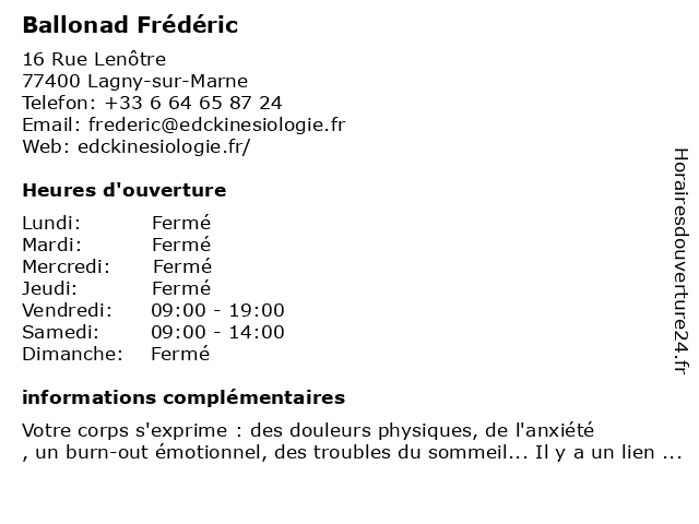| Lundi | Fermé |