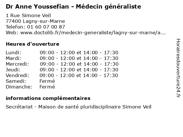 | Lundi | 09:00-12:00 et 14:00-17:30 |